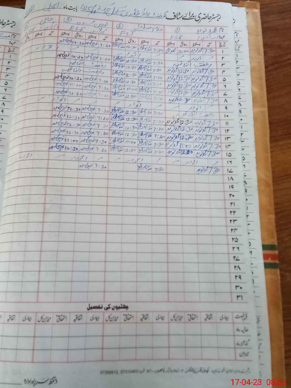 | CNIC | Full Name | Designation | R/C | Absence During Last Calender Month |