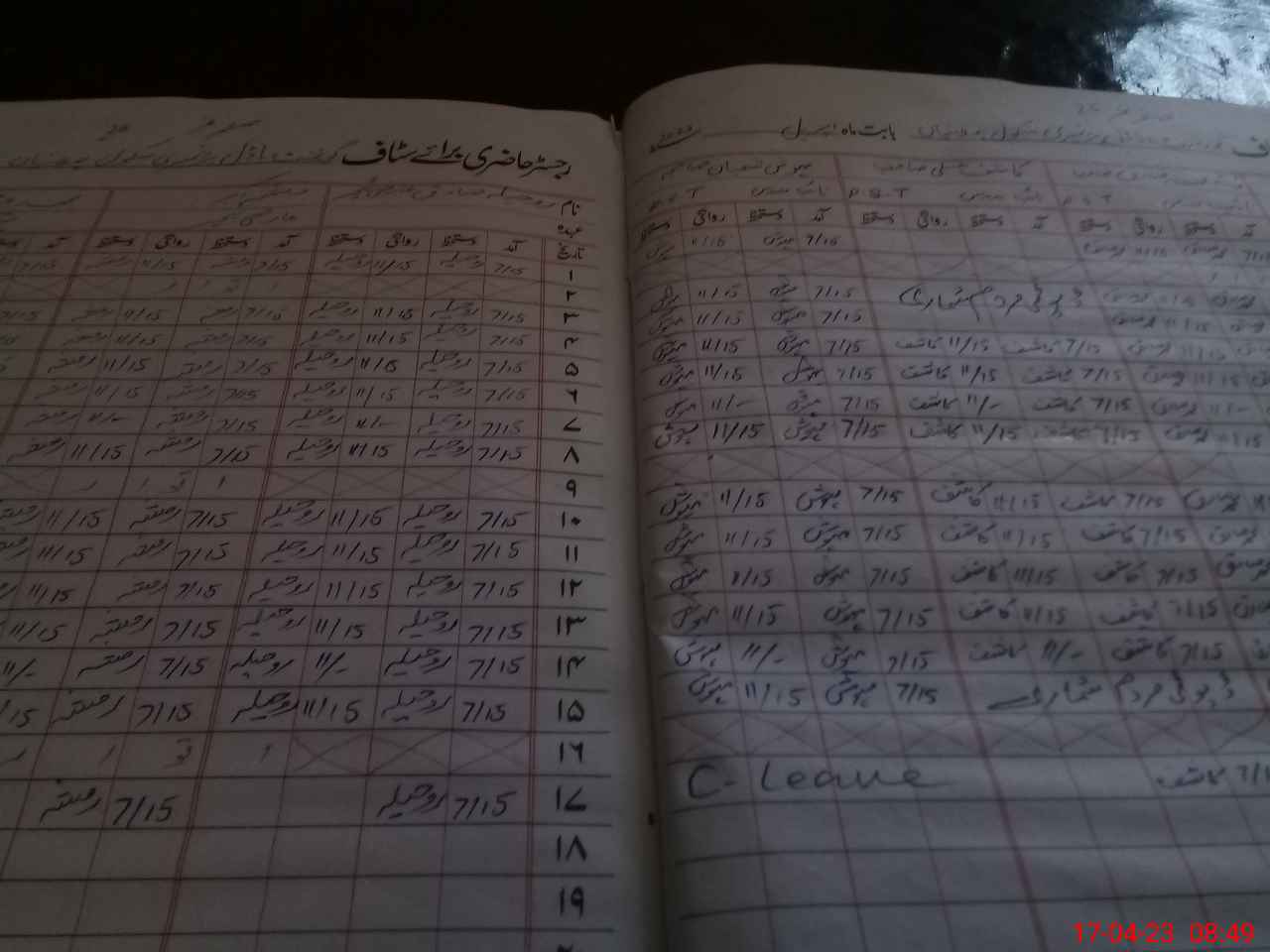 | CNIC | Full Name | Designation | R/C | Absence During Last Calender Month |