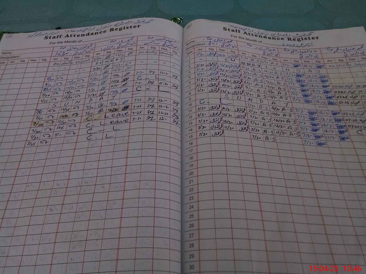 | CNIC | Full Name | Designation | R/C | Absence During Last Calender Month |