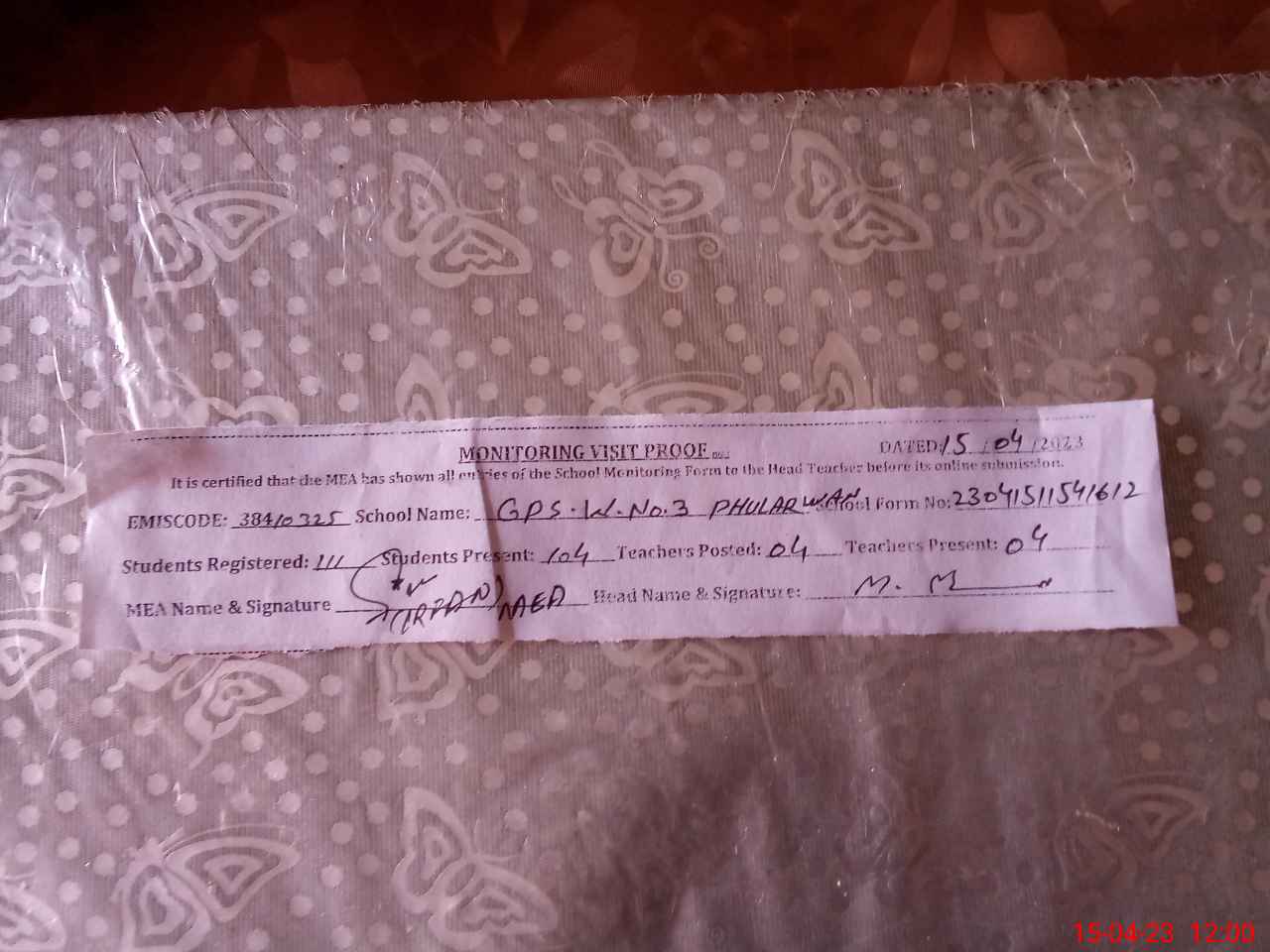| Attendance Register | Head Teacher | MEA with School | Visit Proof |