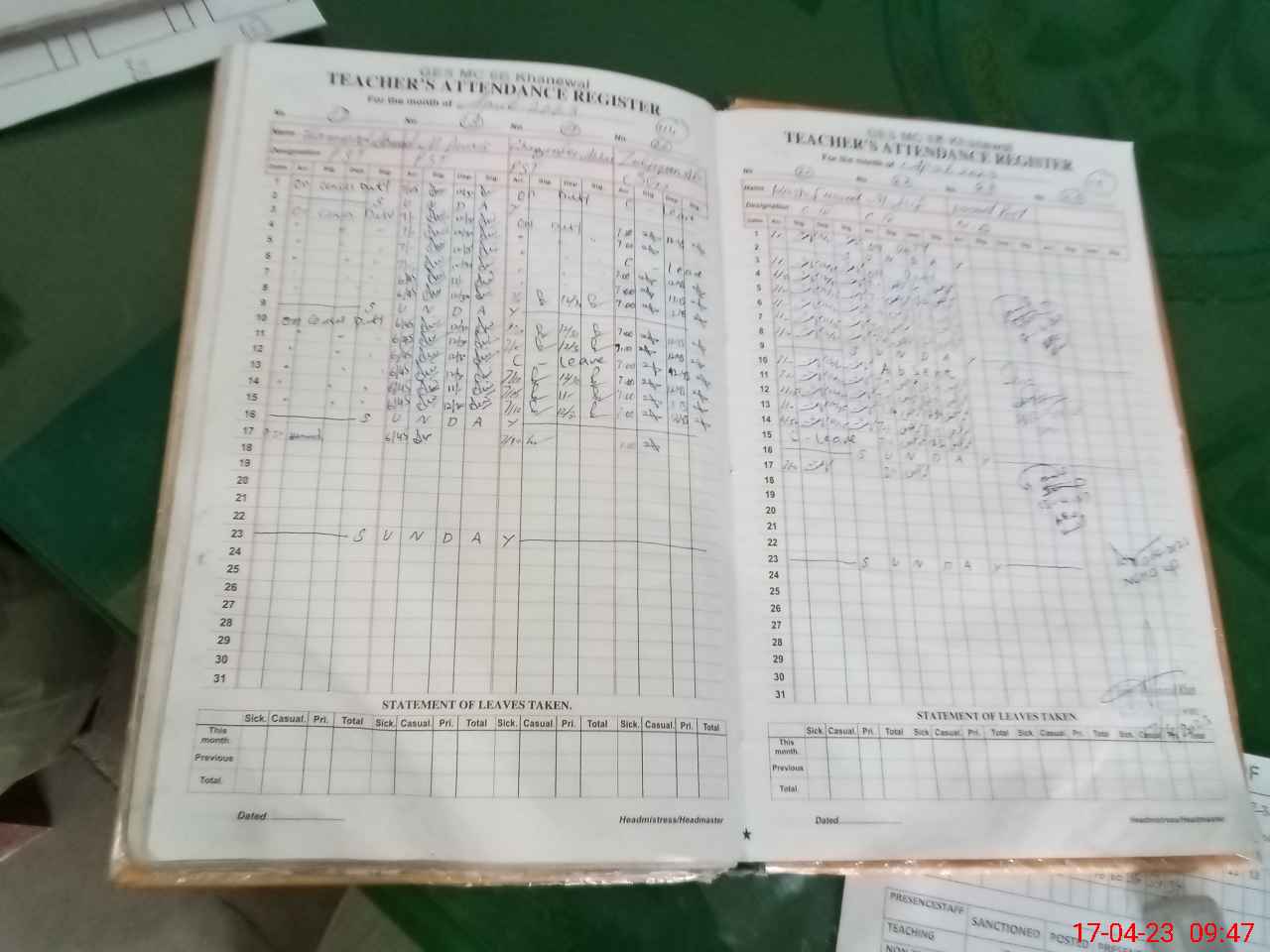 | CNIC | Full Name | Designation | R/C | Absence During Last Calender Month |