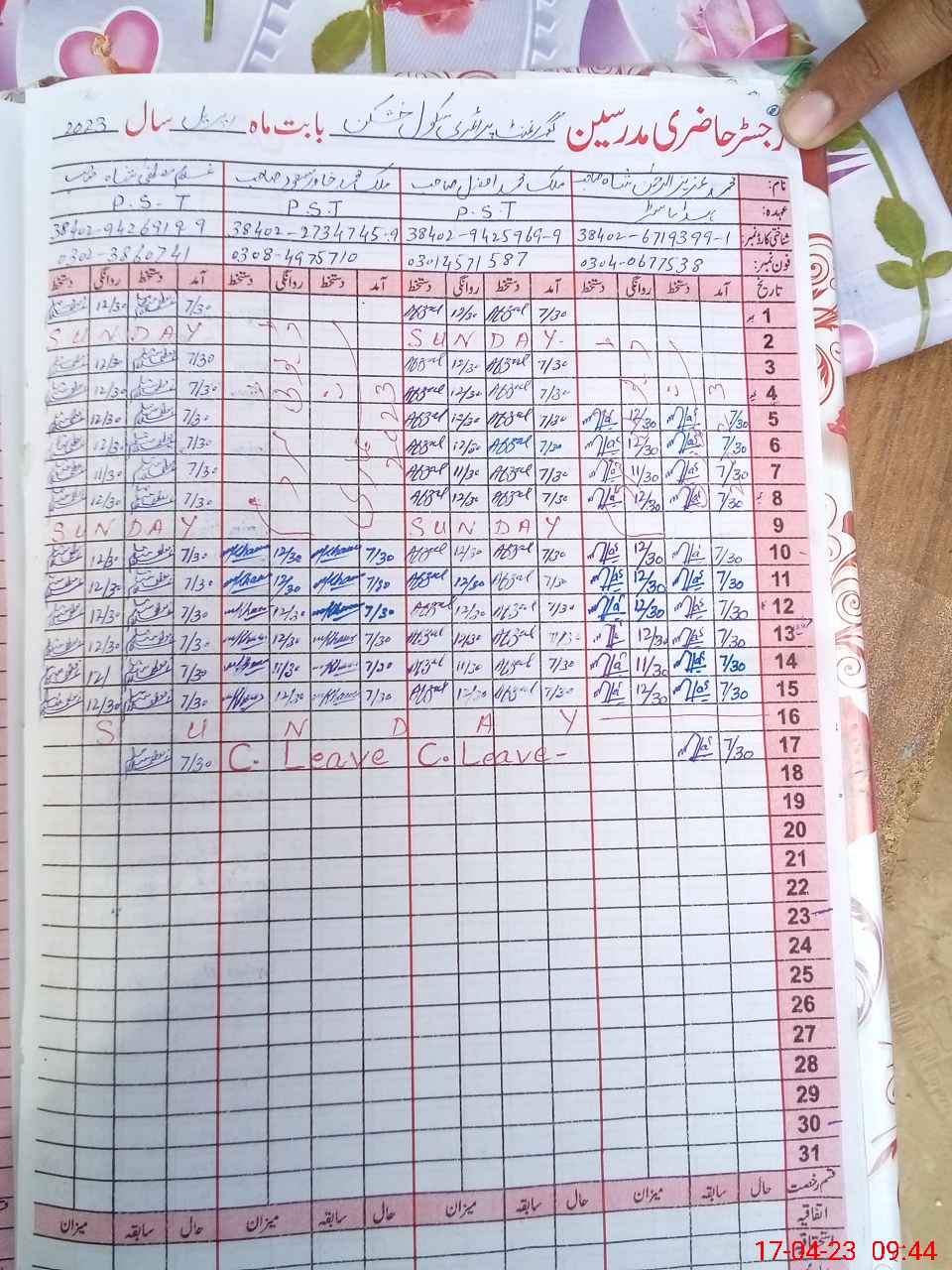 | Name: MU**** AZ**** URRE**** Designation: (School Headmaster's/Headmistress's) ESE (SCI-MATH ) Phone/Cell Number: 03**** |