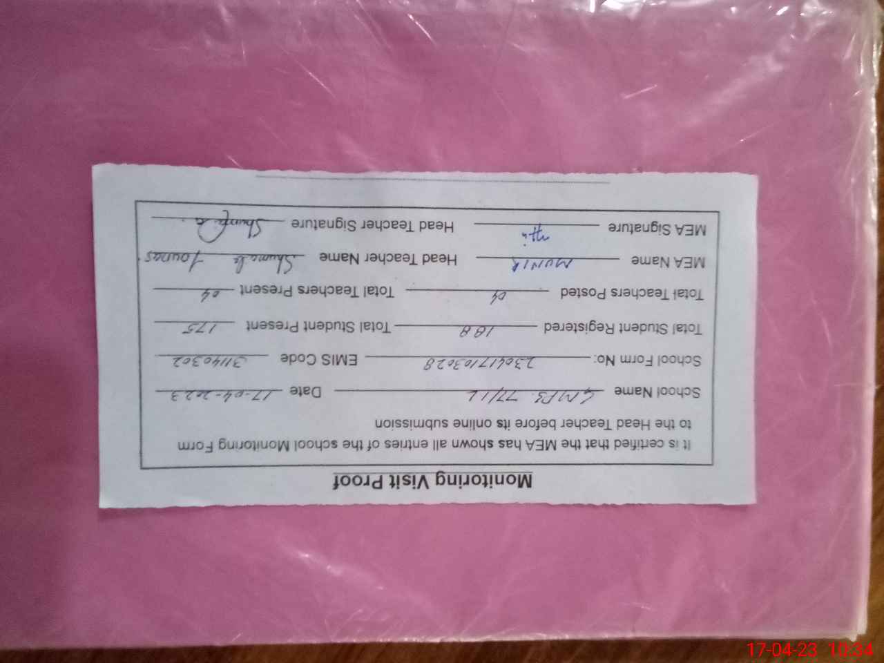 | Certified that this School was Inspected by the Undersigned MEA/DMO Today and the Information Stated Above is as Per Record. | |||||