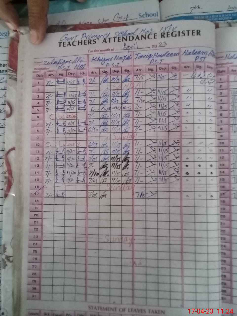 | Name: Zu**** Al**** Designation: (School Headmaster's/Headmistress's) PST Phone/Cell Number: 03**** |