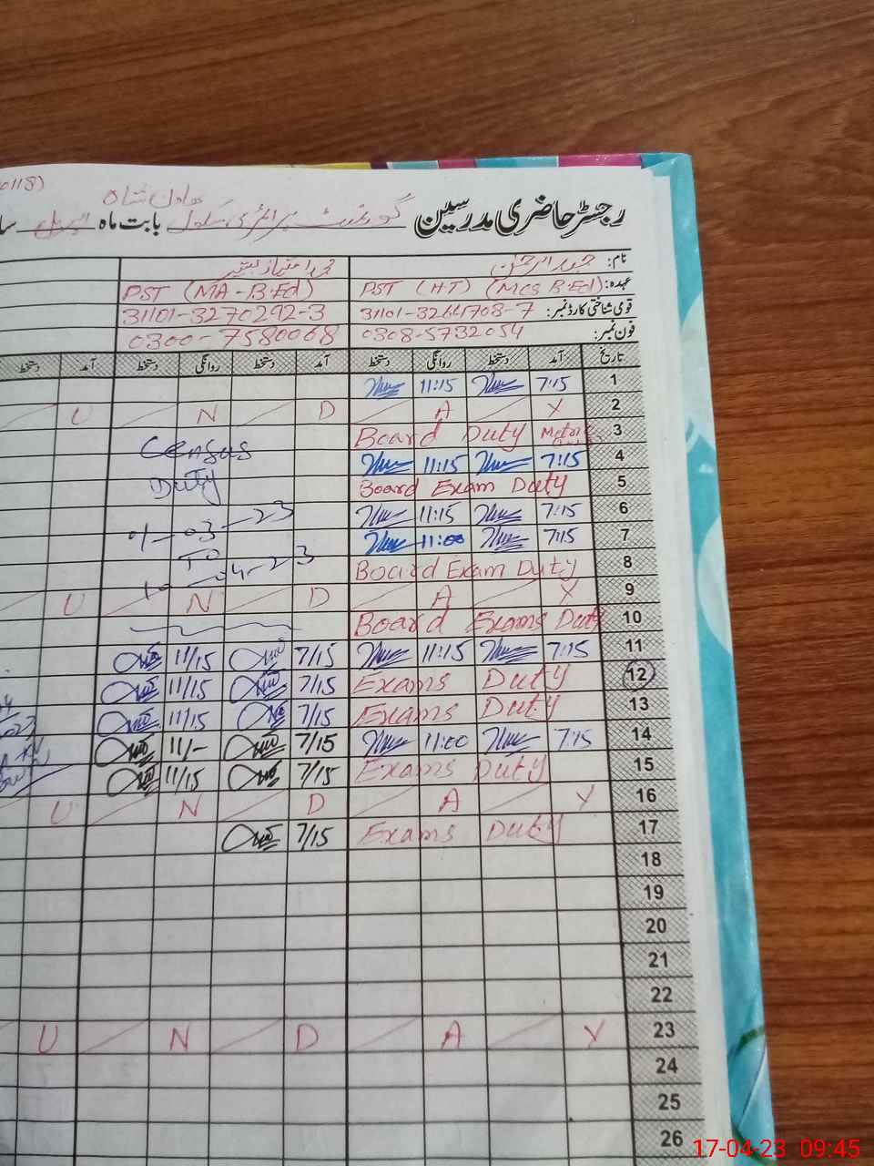 | CNIC | Full Name | Designation | R/C | Absence During Last Calender Month |