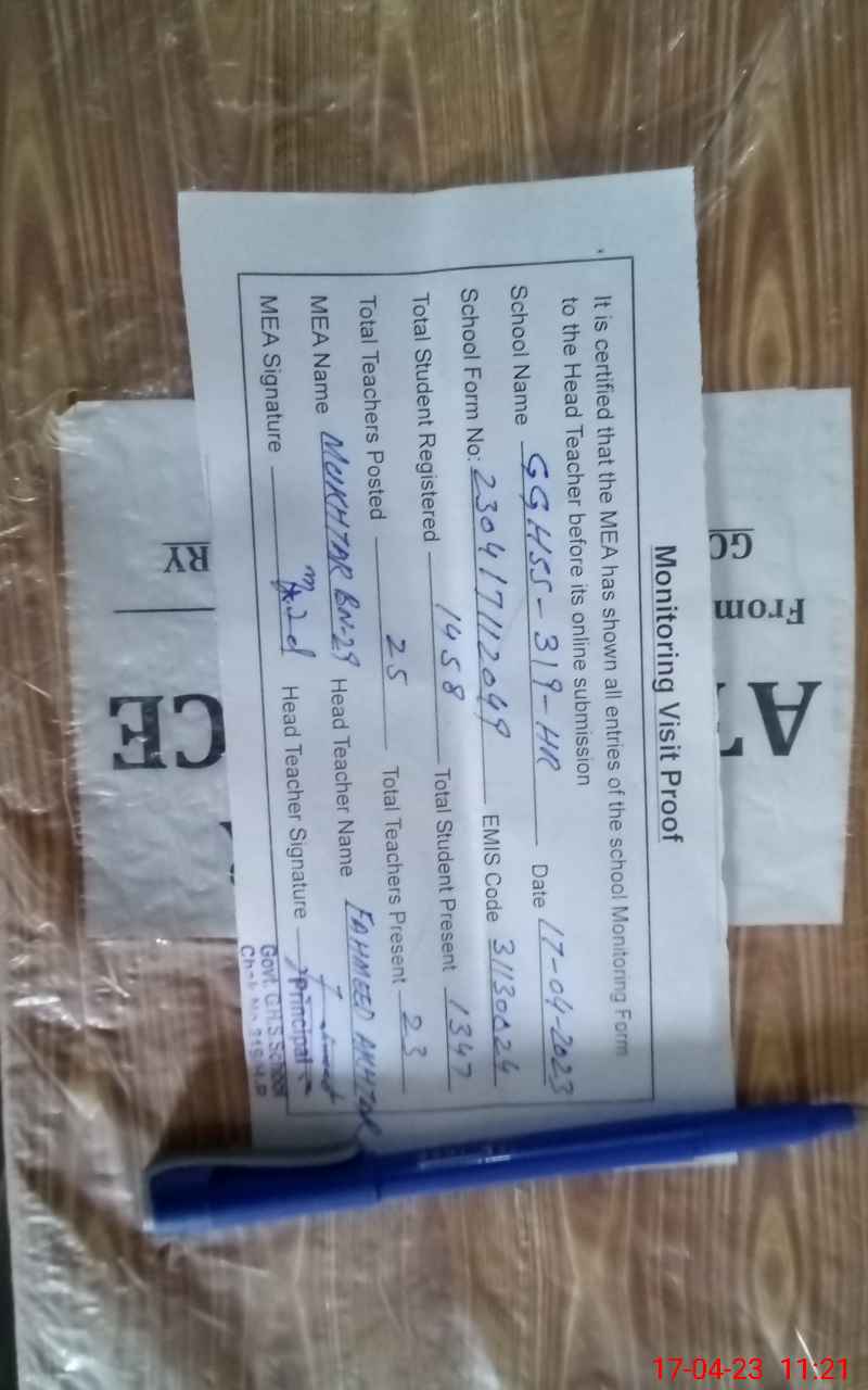 | EMIS Code: 31130024 | Name of School: GGHSS CHAK NO 319 HR | |||