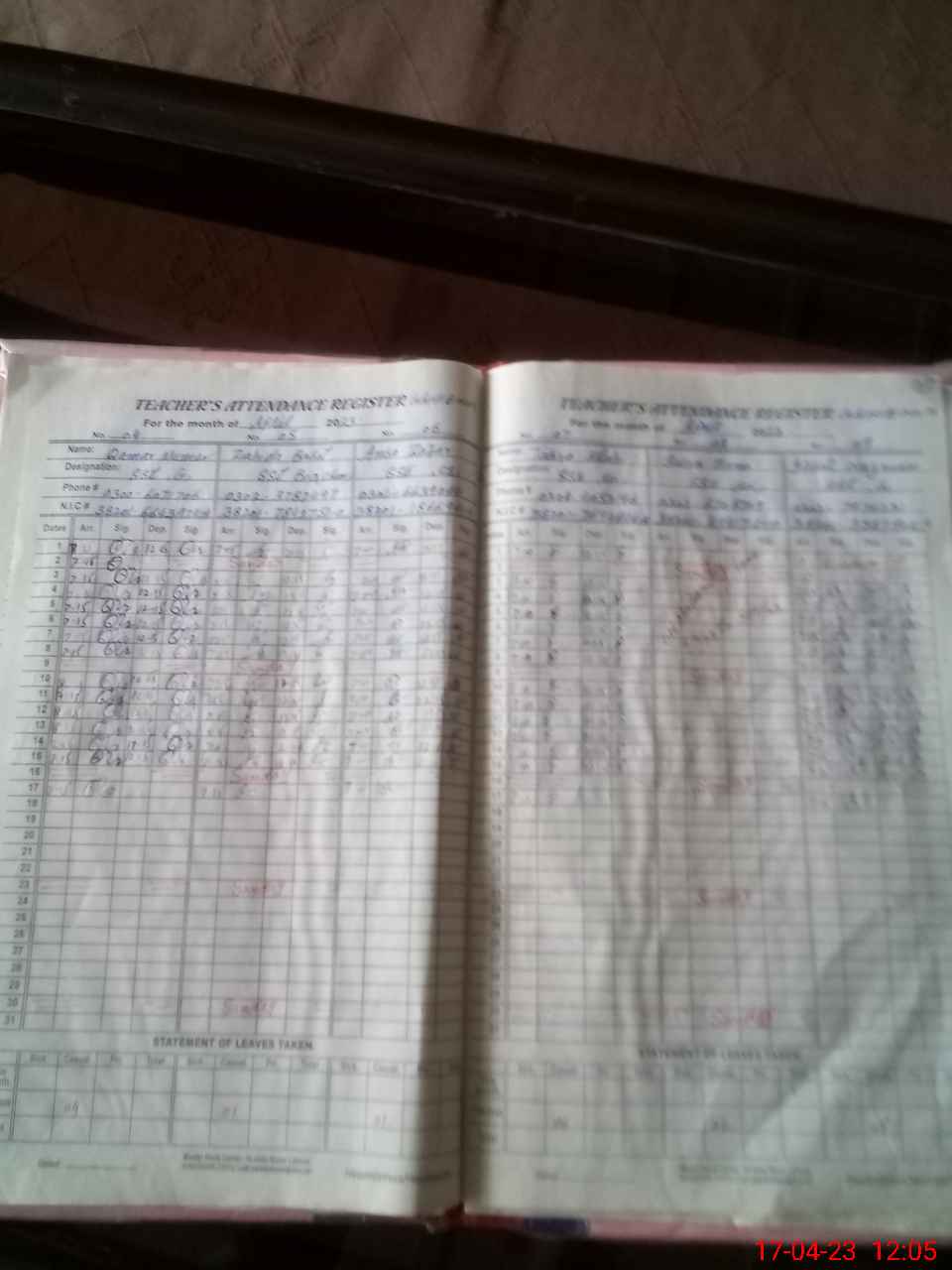 | CNIC | Full Name | Designation | R/C | Absence During Last Calender Month |