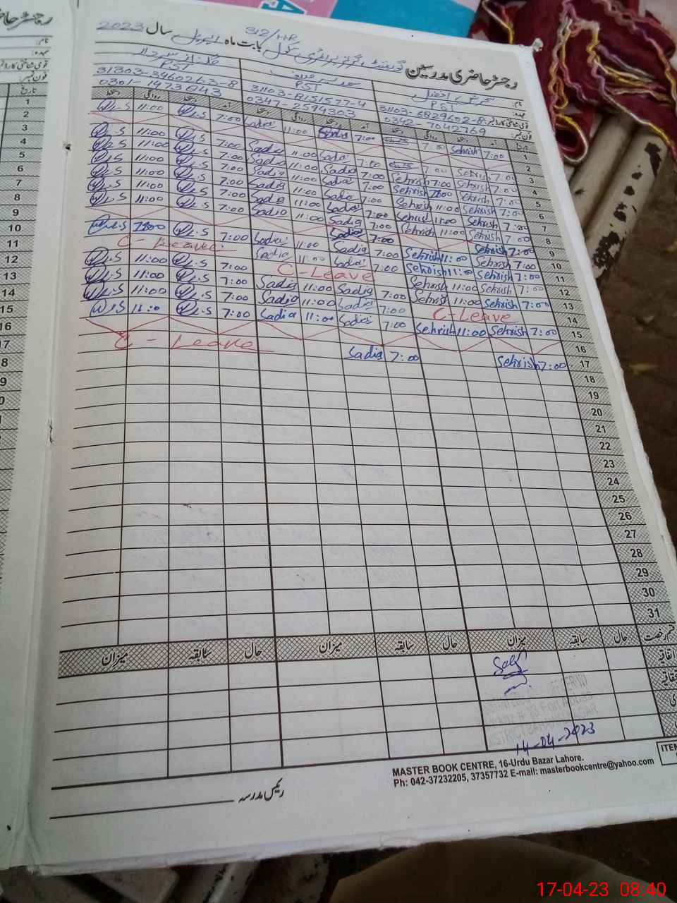 | CNIC | Full Name | Designation | R/C | Absence During Last Calender Month |