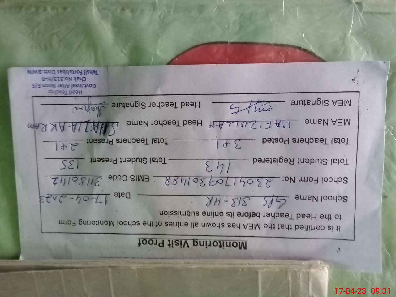 | EMIS Code: 31130142 | Name of School: GPS CHAK 313/HR | |||
