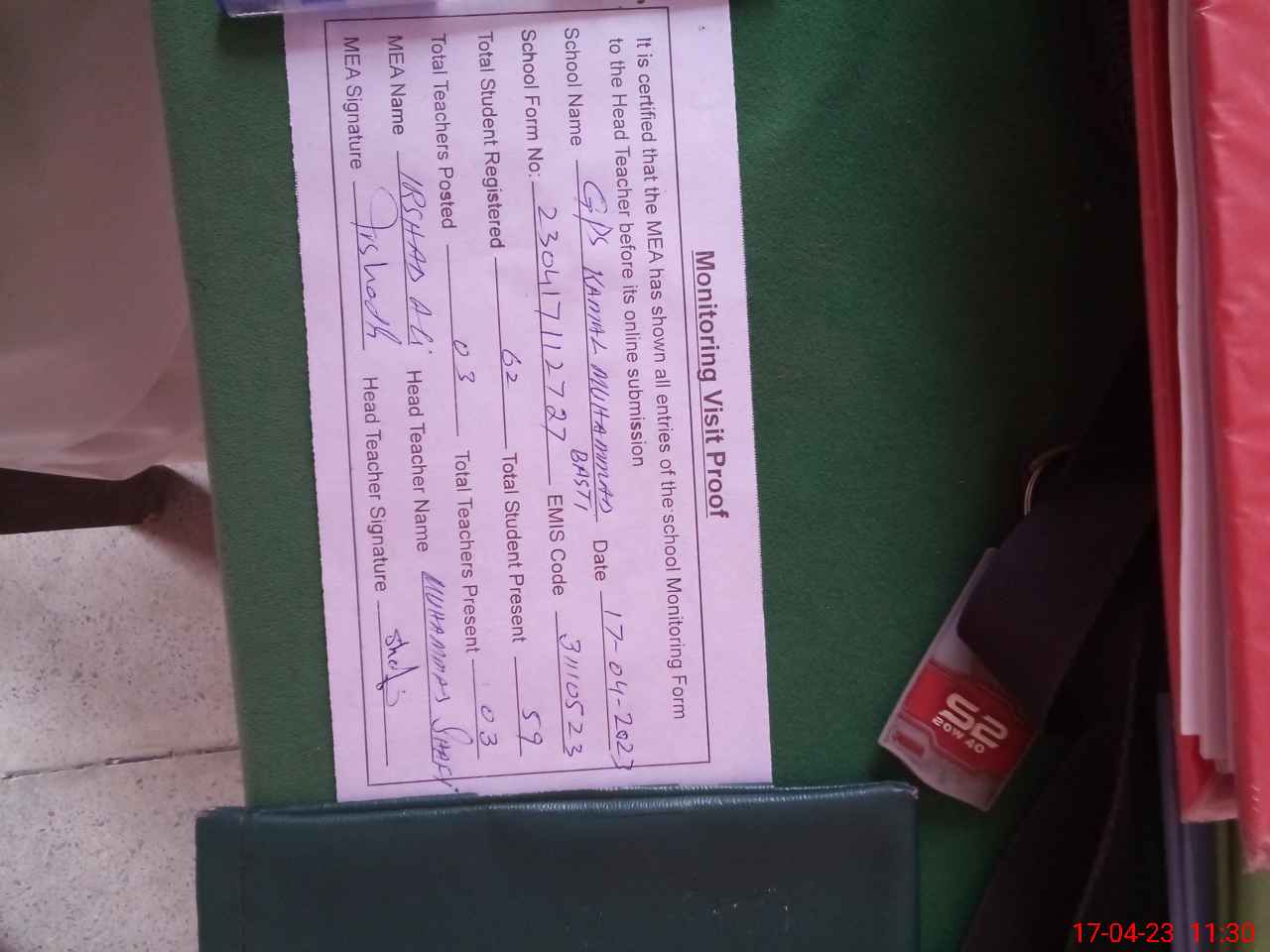 | EMIS Code: 31110523 | Name of School: GPS KAMAL MUHAMMAD BASTI | |||