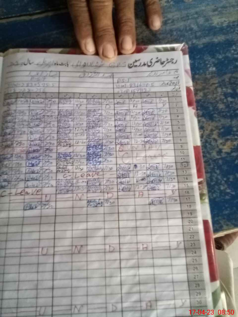 | CNIC | Full Name | Designation | R/C | Absence During Last Calender Month |