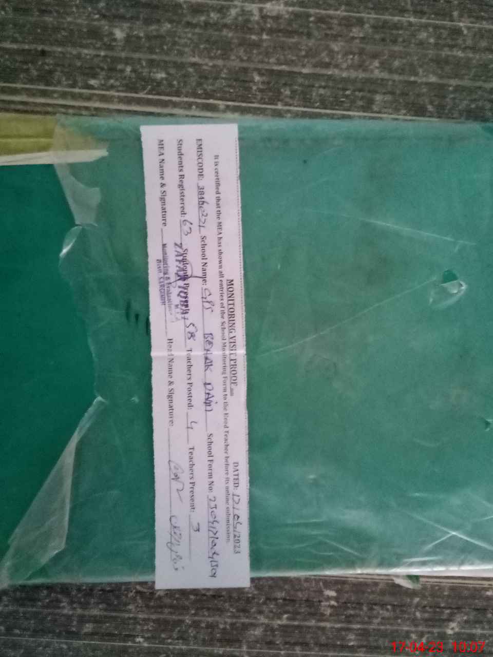 | Attendance Register | Head Teacher | MEA with School | Visit Proof |