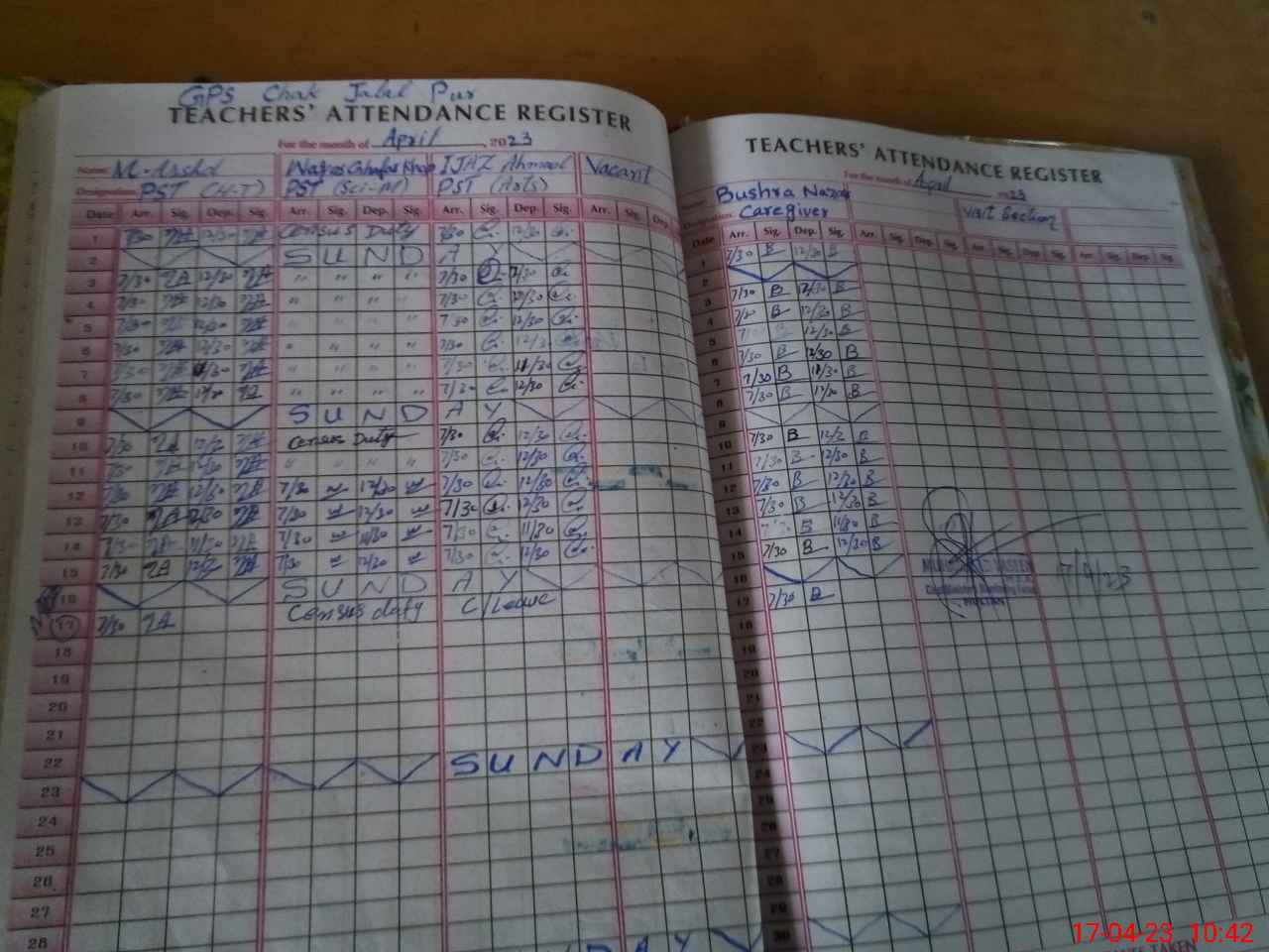 | Name: MU**** AR**** Designation: (School Headmaster's/Headmistress's) PST/PTC/JV Phone/Cell Number: 03**** |