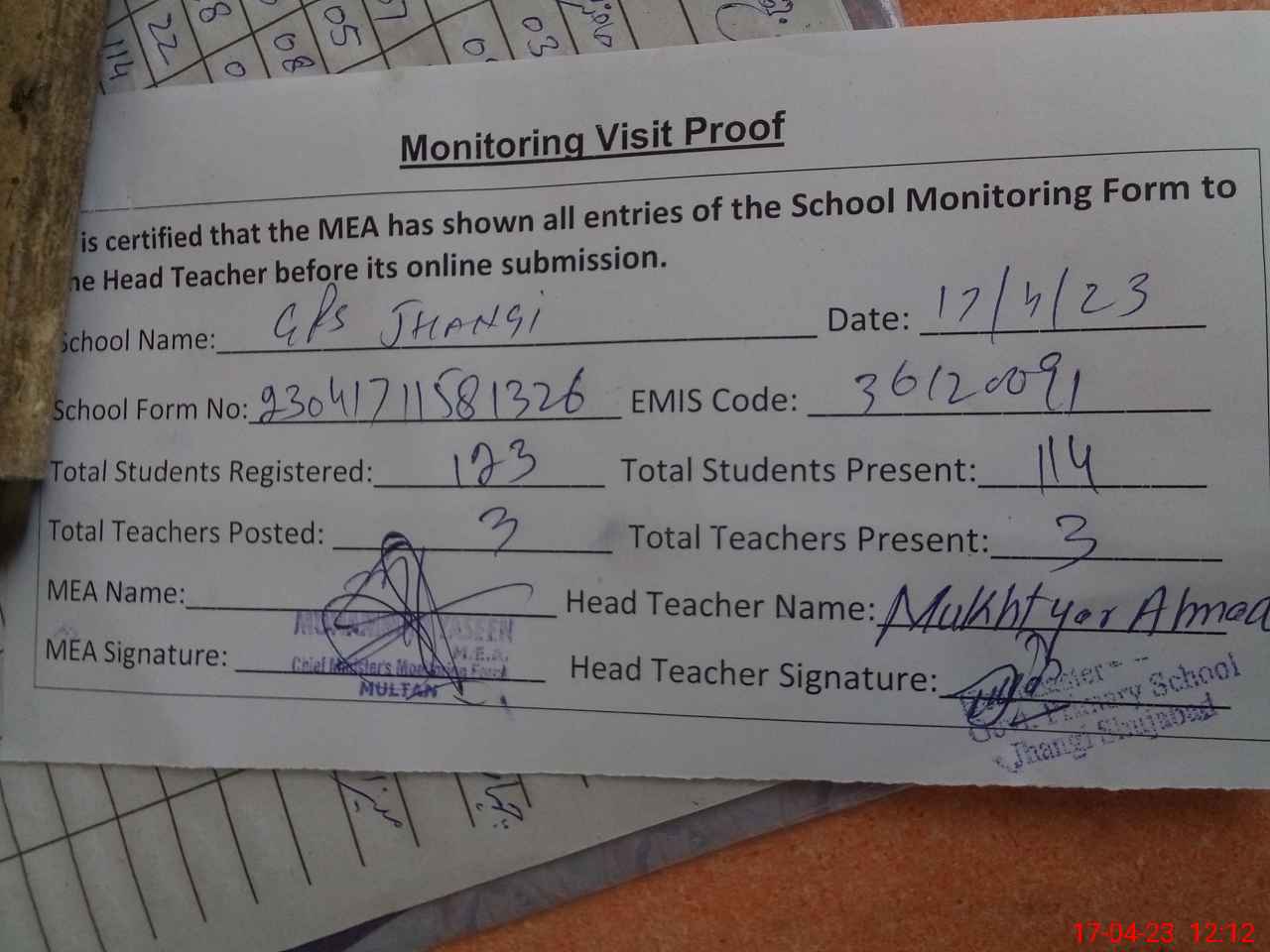 | EMIS Code: 36120091 | Name of School: GPS JHANGI P/O BAGRAIN TEH SHUJABAD | |||