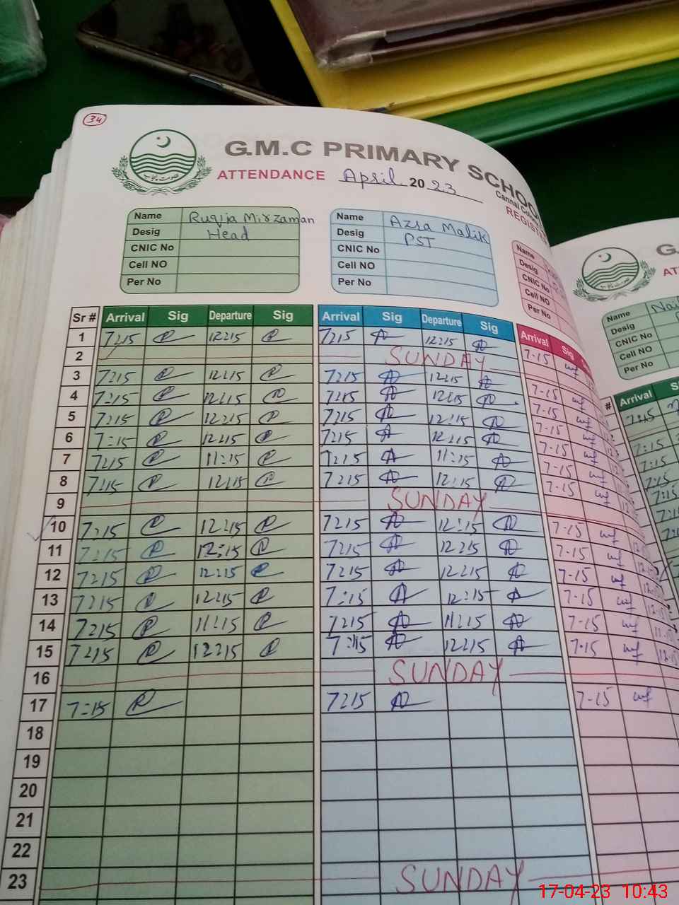 | CNIC | Full Name | Designation | R/C | Absence During Last Calender Month |