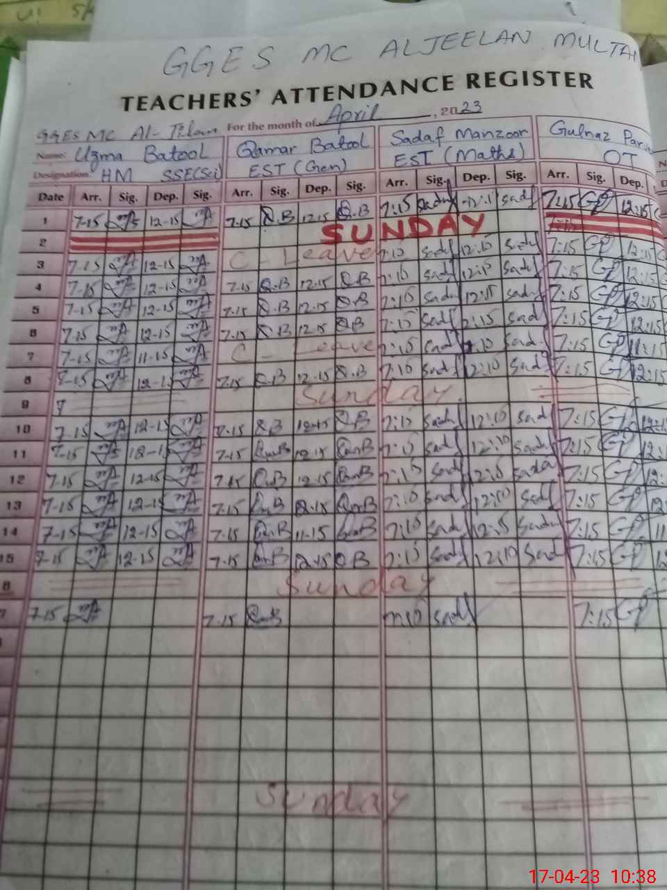 | 36**** | Sh**** Za**** | PST | Temporary | 0 | 0 | 0 | 0 | 0 | 0 | 0 | 0 | 0 | Exam Duty |