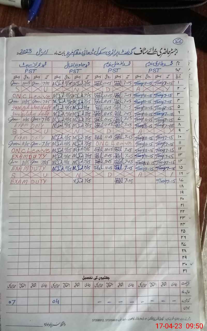 | CNIC | Full Name | Designation | R/C | Absence During Last Calender Month |