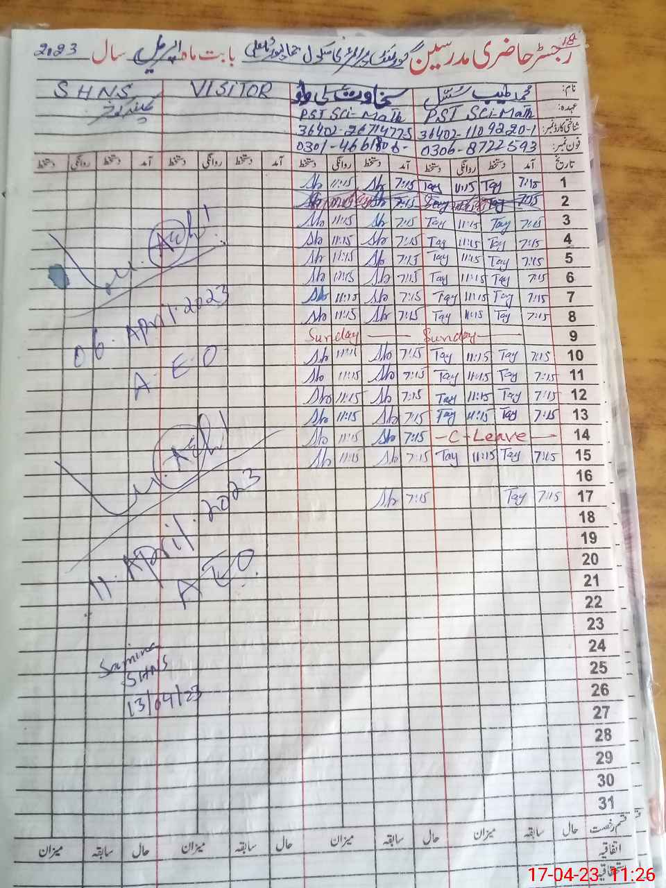 | Name: Mu**** Ta**** Designation: (School Headmaster's/Headmistress's) PST Phone/Cell Number: 03**** |