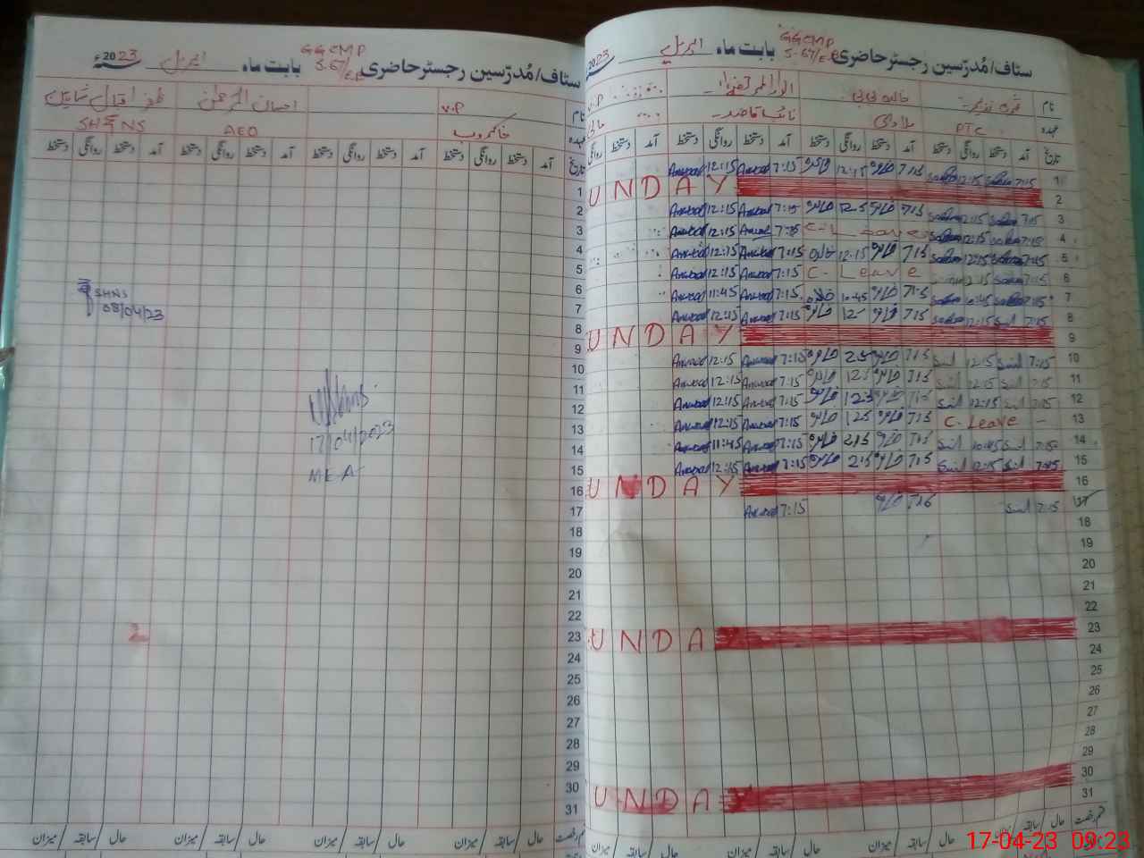| CNIC | Full Name | Designation | R/C | Absence During Last Calender Month |