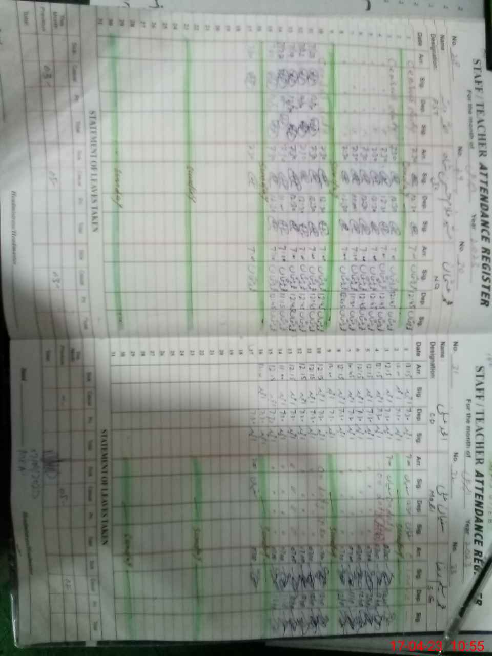| CNIC | Full Name | Designation | R/C | Absence During Last Calender Month |