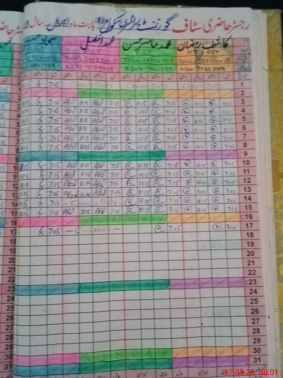 | CNIC | Full Name | Designation | R/C | Absence During Last Calender Month |
