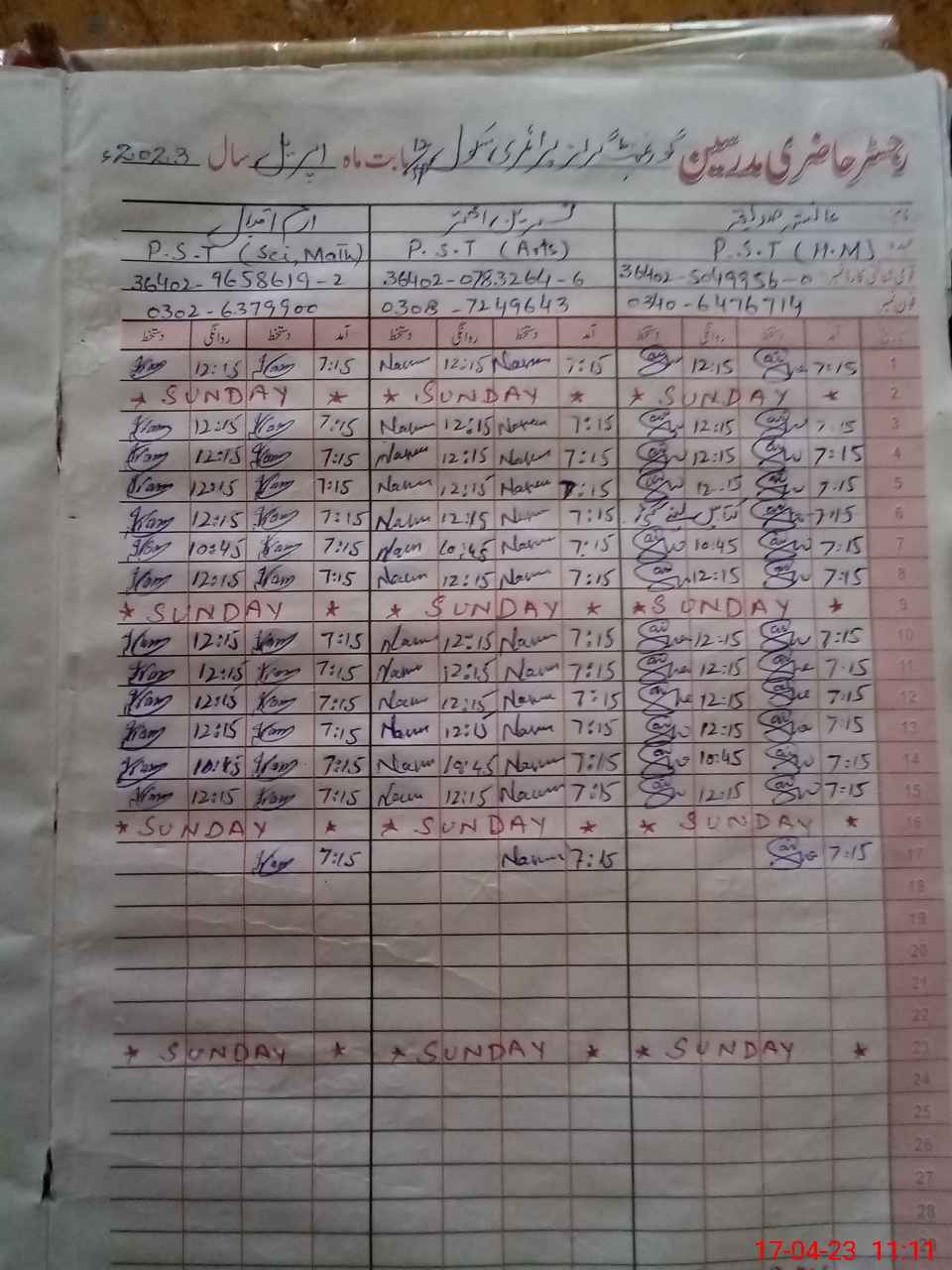| Name: AI**** SA**** Designation: (School Headmaster's/Headmistress's) PST Phone/Cell Number: 03**** |
