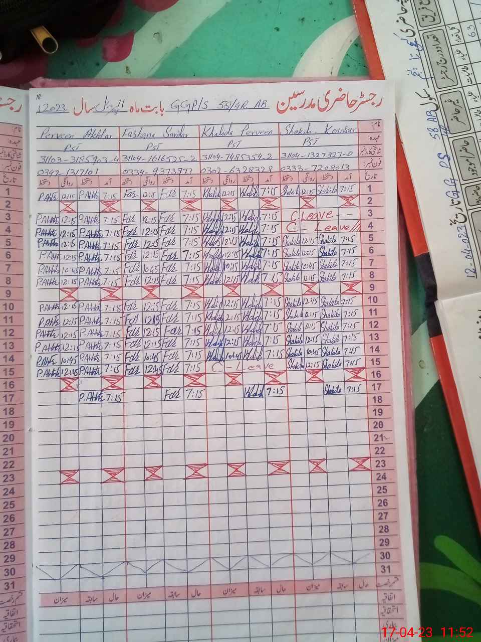 | CNIC | Full Name | Designation | R/C | Absence During Last Calender Month |