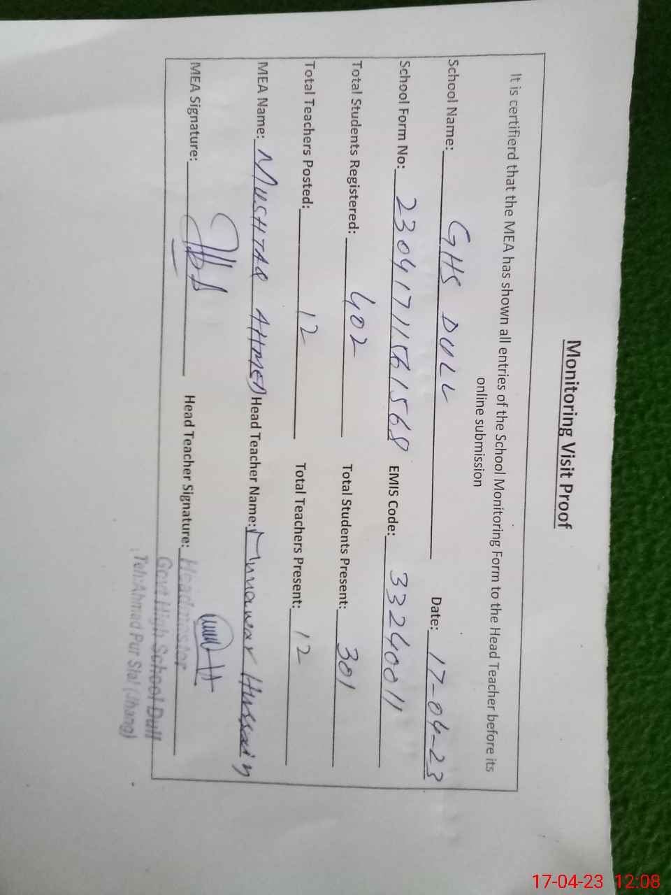 | EMIS Code: 33240011 | Name of School: GHS DULL | |||