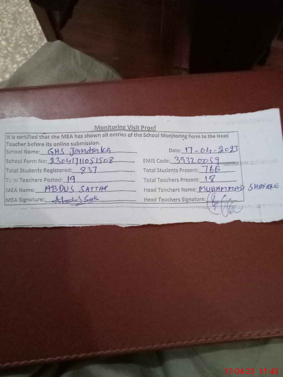 | EMIS Code: 39320059 | Name of School: GHS JANDRAKA | |||