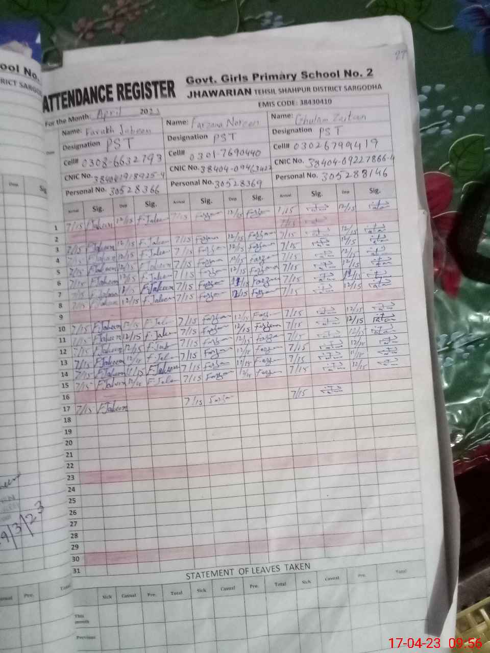 | Name: FA**** JA**** Designation: (School Headmaster's/Headmistress's) PST Phone/Cell Number: 03**** |