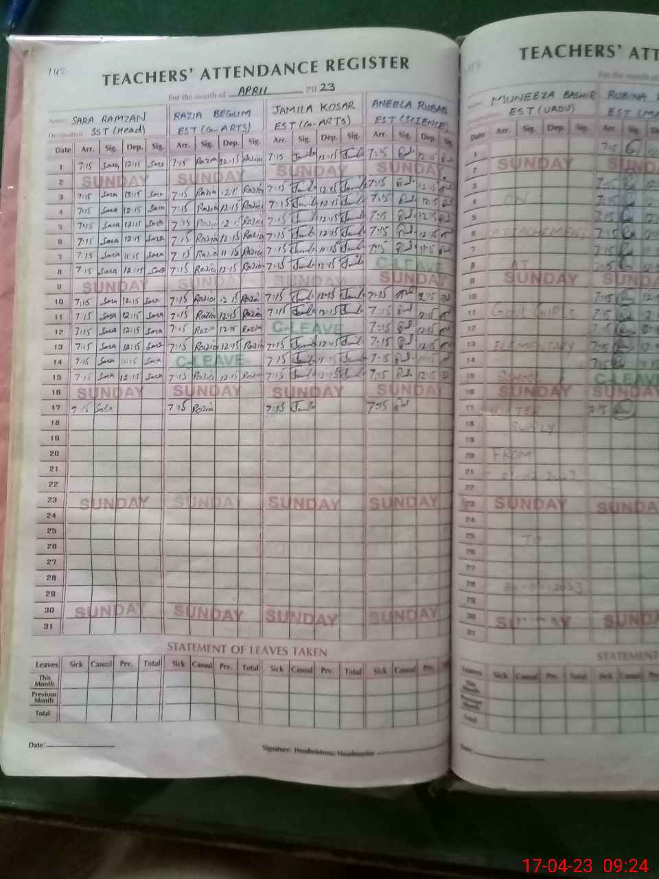 | 38**** | Sa**** Ra**** | Regular | 0 | 0 | 0 | 0 | 0 | 0 | 0 | 0 | 0 | Absent (Un-Authorized) | |