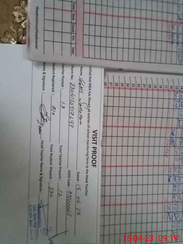 | Attendance Register | Head Teacher | MEA with School | Visit Proof |