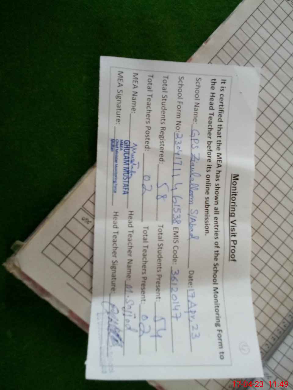 | EMIS Code: 36120147 | Name of School: GPS ZIA-UL-ULOOM MOHALLA HAFIZABAD | |||