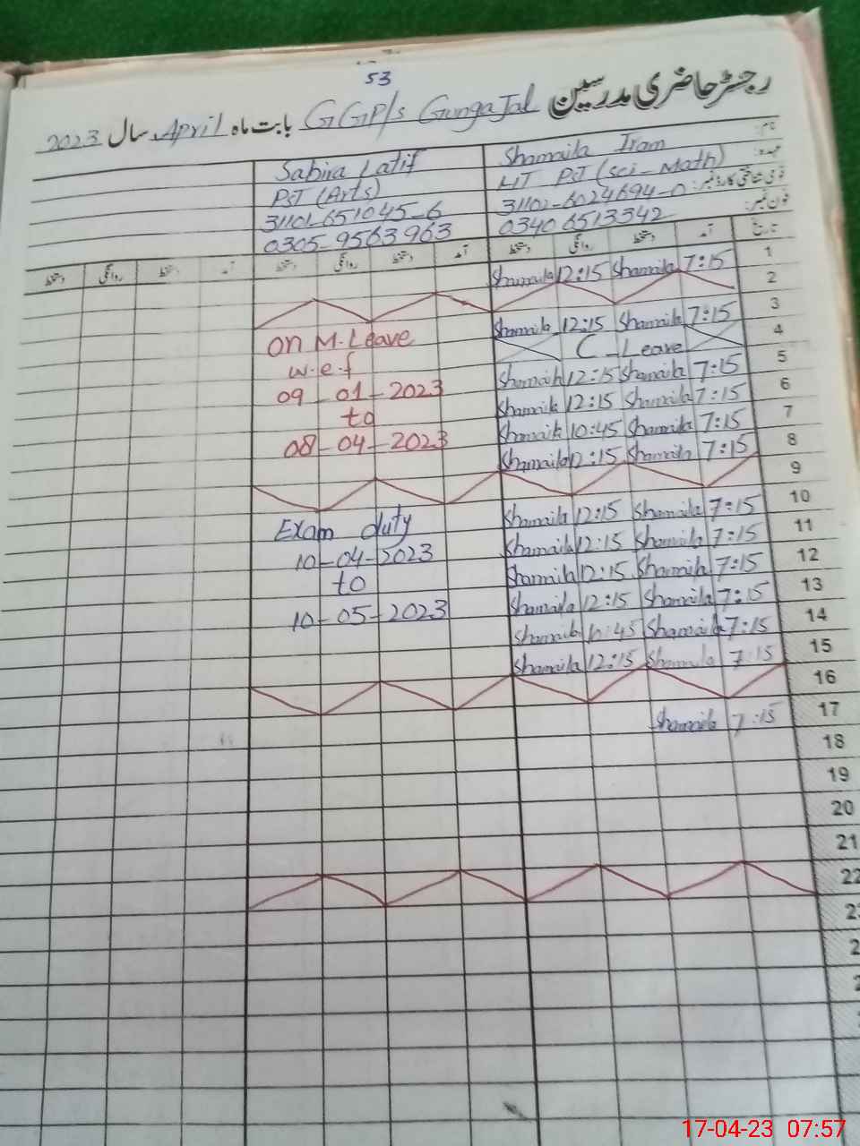 | 31**** | Sa**** La**** | ESE | Contract | 0 | 0 | 0 | 0 | 0 | 0 | 0 | 0 | 0 | Exam Duty |