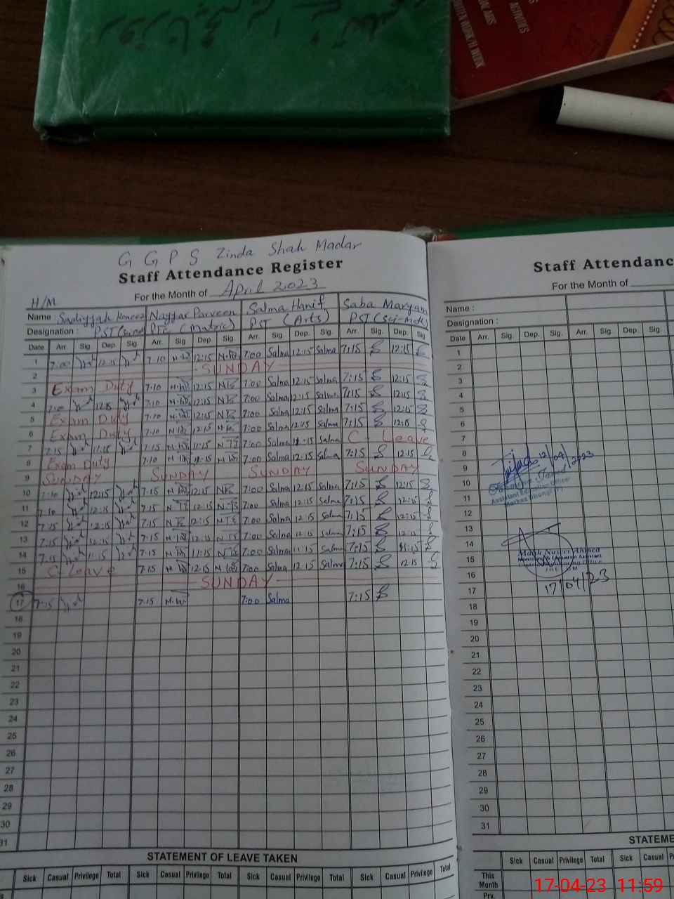 | Leave | Duty | Absent | Maternity | Medical | Ex- Pak |