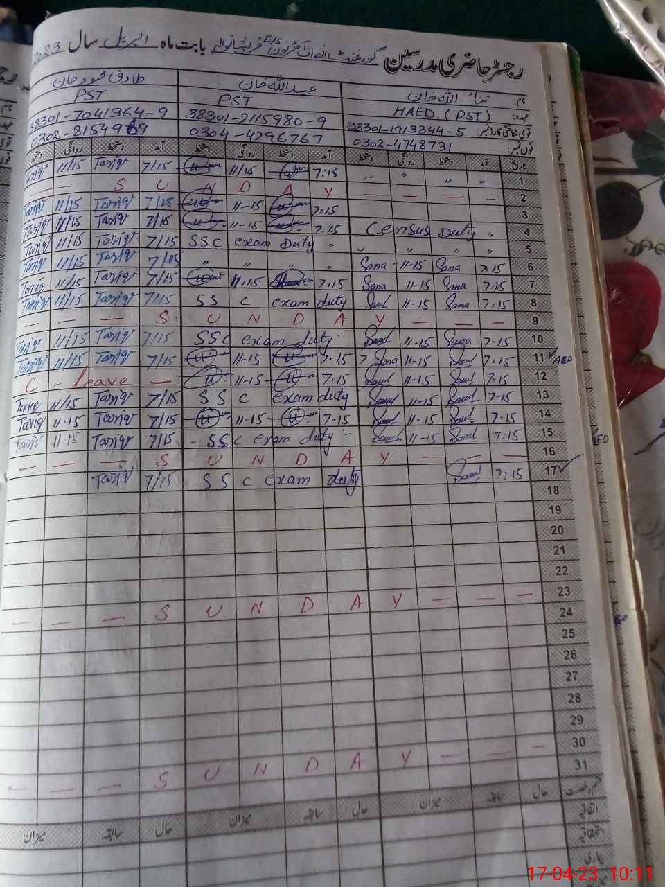 | Name: Sa**** Ul**** Kh**** Designation: (School Headmaster's/Headmistress's) PST Phone/Cell Number: 03**** |