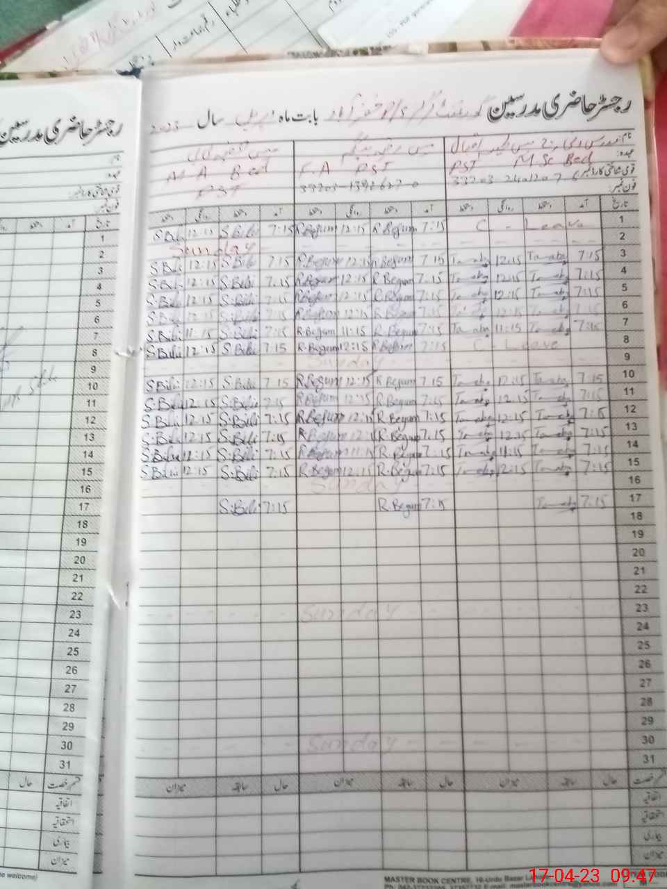 | Name: TA**** IQ**** Designation: (School Headmaster's/Headmistress's) PST Phone/Cell Number: 03**** |