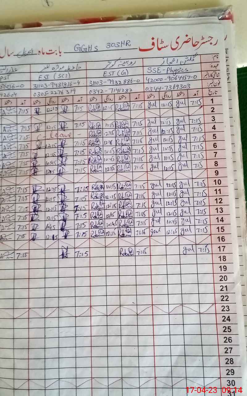 | Name: Gu**** Ij**** Designation: (School Headmaster's/Headmistress's) SSE (Phics) Phone/Cell Number: 03**** |