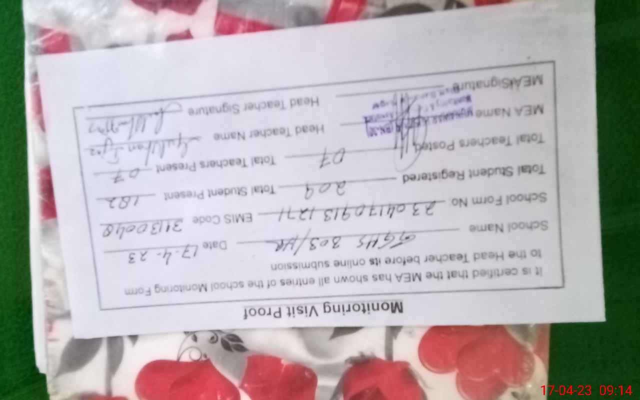 | Attendance Register | Head Teacher | MEA with School | Visit Proof |