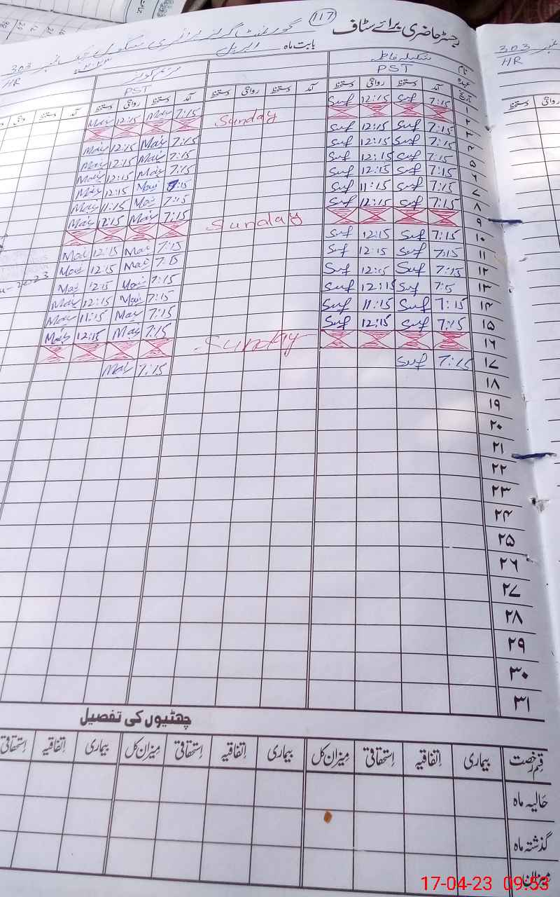 | CNIC | Full Name | Designation | R/C | Absence During Last Calender Month |