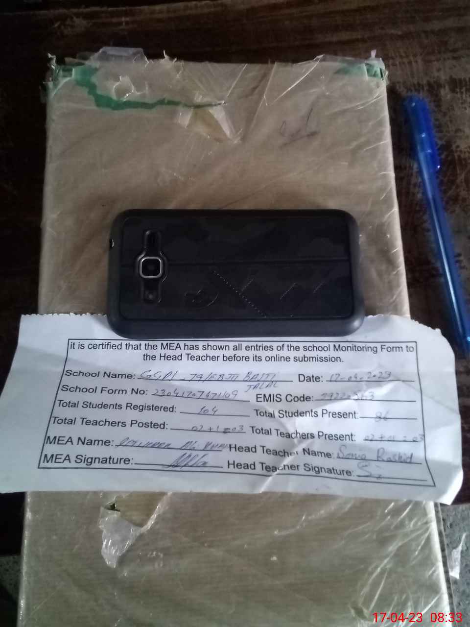 | Attendance Register | Head Teacher | MEA with School | Visit Proof |