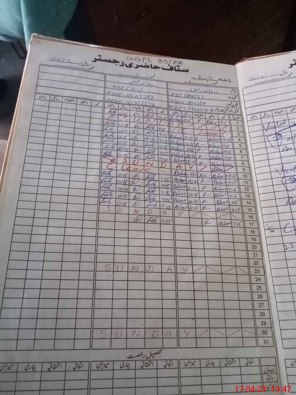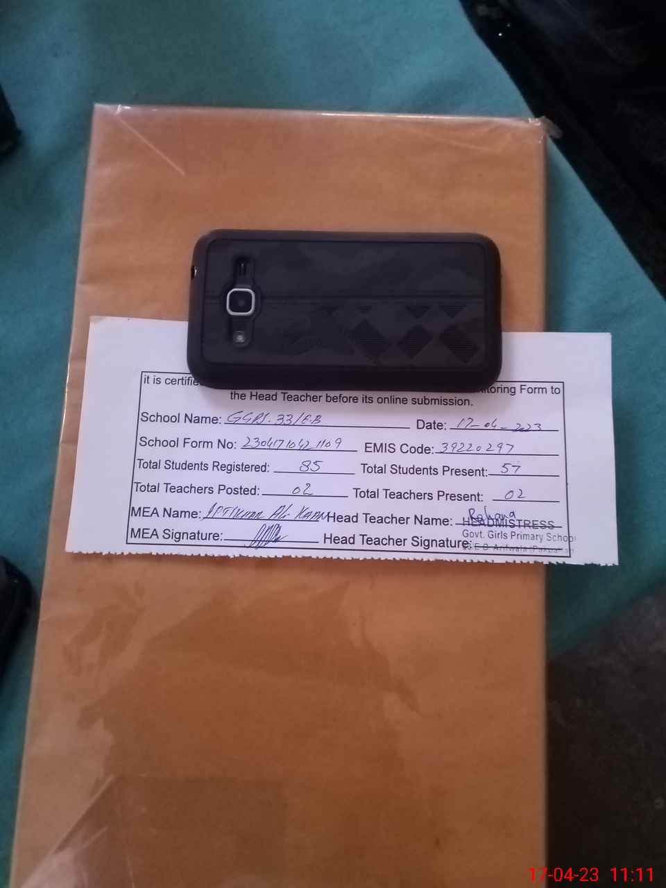 | Name: RE**** RA**** Designation: (School Headmaster's/Headmistress's) PST Phone/Cell Number: 03**** |