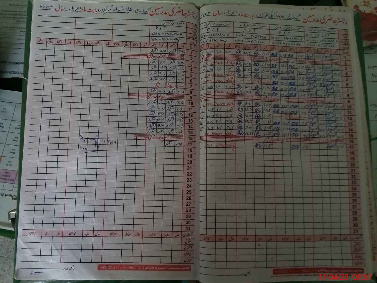 | 35**** | Sa**** Sa**** | Contract | 2 | 0 | 0 | 0 | 0 | 0 | 0 | 0 | 2 | Exam Duty | |