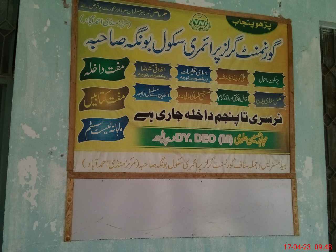 | EMIS Code: 39310518 | Name of School: GGPS BONGA SAHBA | |||