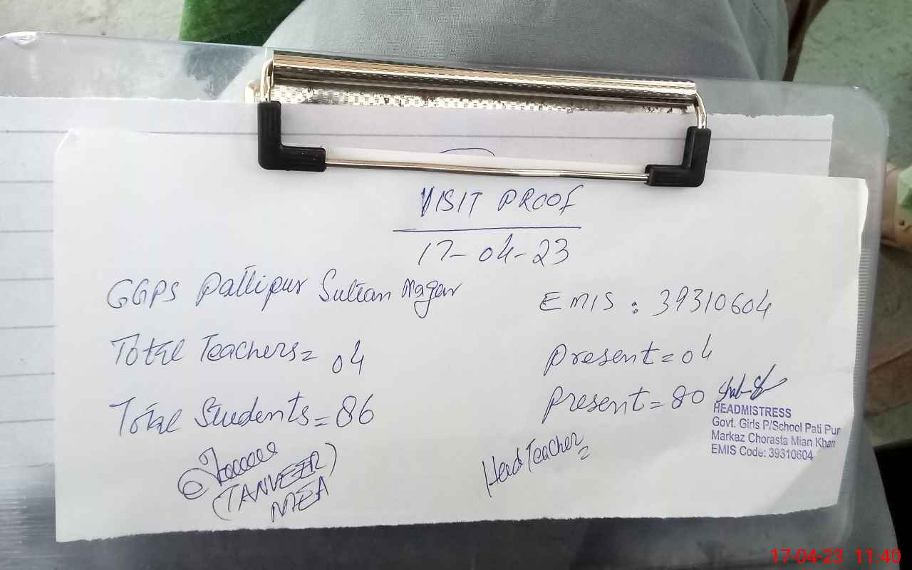 | EMIS Code: 39310604 | Name of School: GGPS PATI PUR (SULTAN NAGAR) | |||