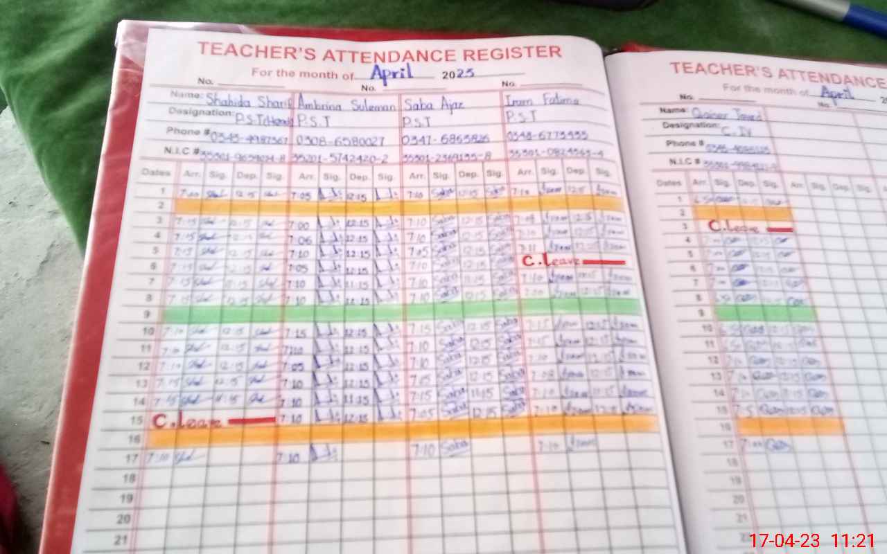 | CNIC | Full Name | Designation | R/C | Absence During Last Calender Month |