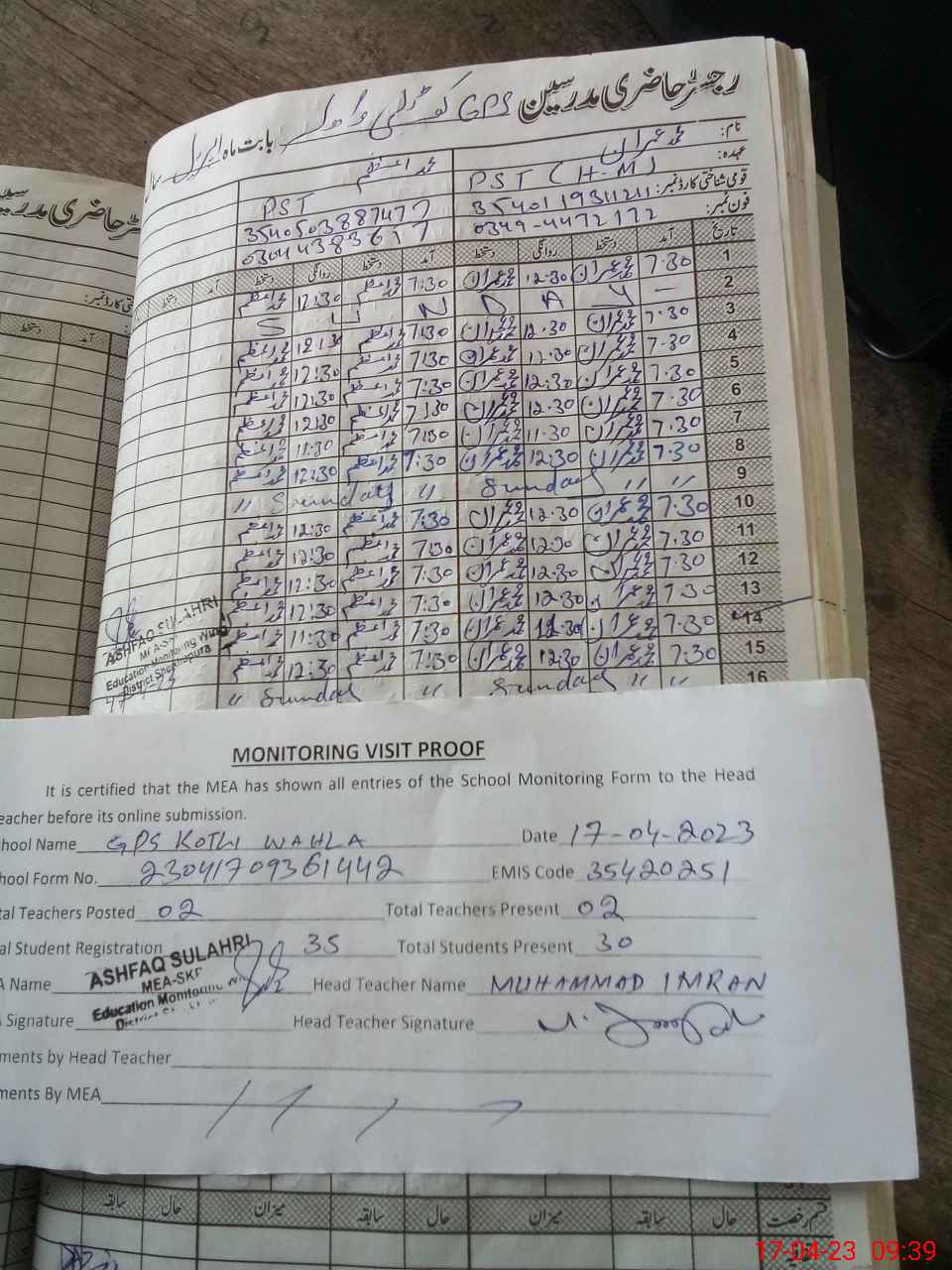 | EMIS Code: 35420251 | Name of School: GPS KOTLI WAHLLAH | |||