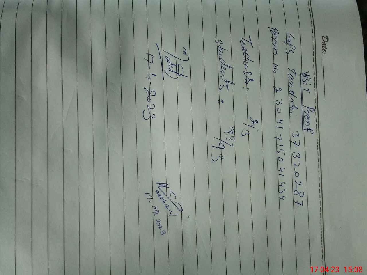 | Attendance Register | Head Teacher | MEA with School | Visit Proof |