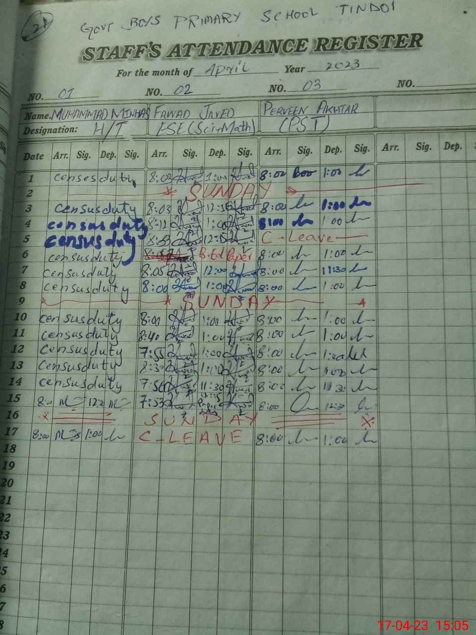 | CNIC | Full Name | Designation | R/C | Absence During Last Calender Month |