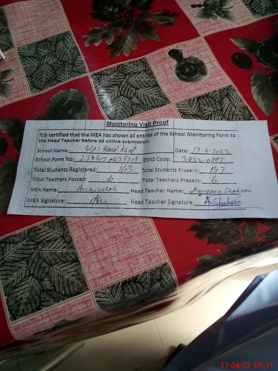 | EMIS Code: 38320881 | Name of School: GGPS SAMAL KHEL | |||